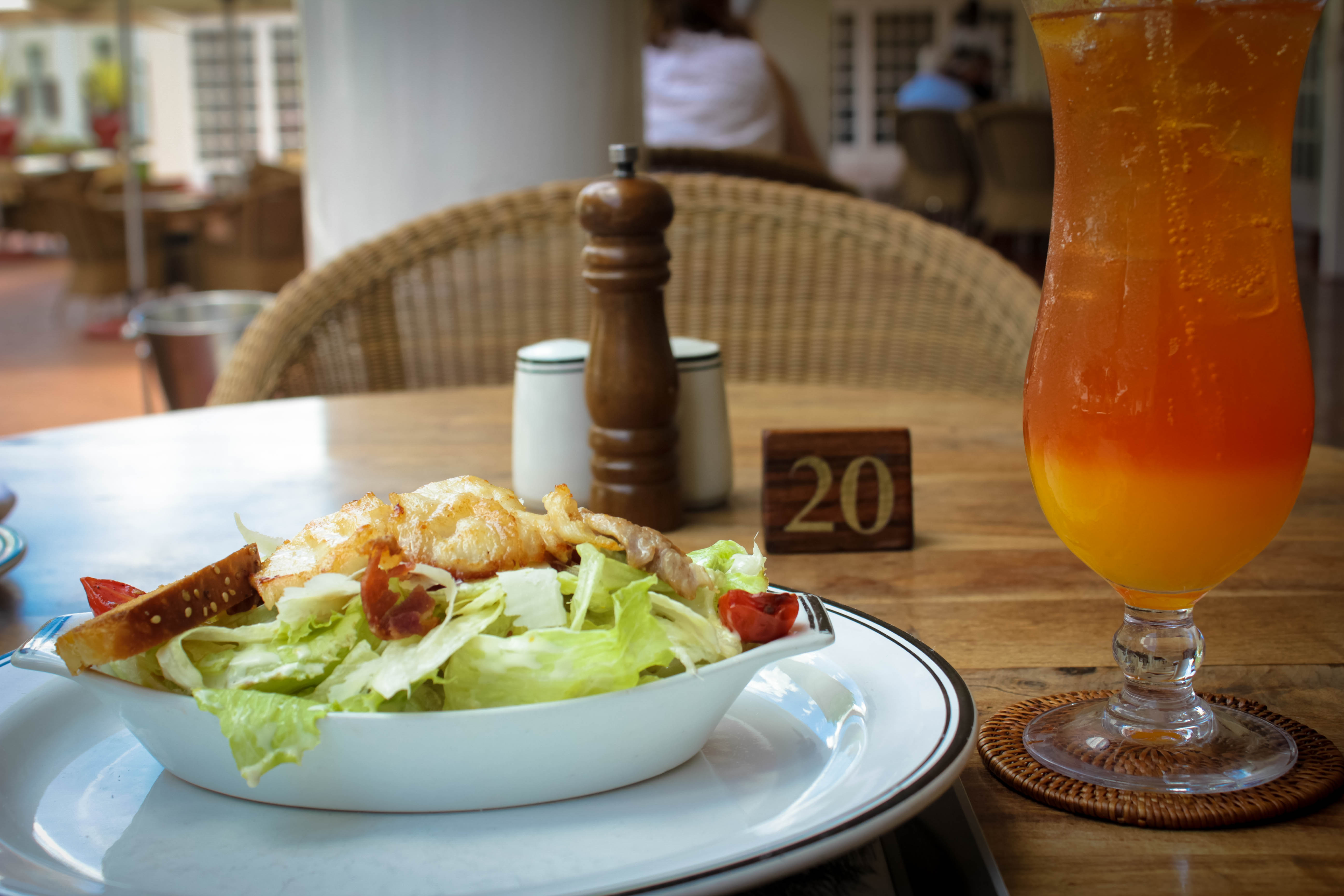 Tôi nuông chiều bản thân bằng một bữa trưa ngon miệng ở đây với món salad cá sấu, một đĩa tagliatelle phô mai béo ngậy và một ly Malawi Shandy mát lạnh. Bữa ăn ngon đến độ khi ngồi gõ lạch cạch những dòng này bây giờ tôi vẫn còn thòm thèm. Phục vụ viên ở đây mỗi người chỉ phục vụ một bàn, xưng tên giới thiệu rành mạch với thực khách và trò chuyện như những người bạn thân quen.