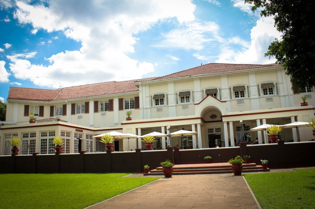 Bị đô hộ nhiều nằm trời dưới kỷ nguyên Victoria, chẳng có gì khó hiểu nếu Victoria Falls còn phảng phất nét quý tộc Anh thuở nào. Tôi cho phép mình đi quanh thành phố dưới những hàng cây xanh dịu mát sau một buổi sáng quanh quẩn trong vườn quốc gia Victoria Falls. Dân địa phương nằm trên bãi cỏ thư thái đánh một giấc ngủ trưa quên trời đất, tình nhân thoải mái ôm nhau nồng cháy trong cái công viên duy nhất của trung tâm thành phố. Lững thững đi bộ đến điểm cuối cùng của thành phố, tôi chạm khách sạn Victoria Falls – cái khách sạn cổ kính, xa hoa bậc nhất được xây dựng với mục đích chào mừng những vị khách thượng lưu đến Zimbabwe bằng đường tàu lửa Cairo (*) để ngắm nhìn cầu Victoria Falls hoàn thành vào năm 1904. Khách sạn Victoria Falls thở hơi thở Anh quốc, mang trong mình dòng máu Anh quốc, chứng kiến những sự kiện diễn ra ngày trước của Anh quốc và đến ngày nay vẫn còn lưu giữ nét văn hoá Anh quốc. Khách sạn Victoria Falls hiển nhiên là một trong những khách sạn giá trị nhất thế giới. Ý tôi là giá trị lịch sử, giá trị tinh thần và cả giá tiền cũng…chát chúa.