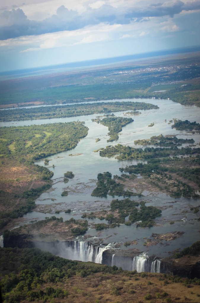 Dĩ nhiên tôi đã chẳng đi ngược dòng từ Mozambique lên thượng nguồn mà bay đến Victoria Falls. Thác nằm trên lãnh thổ của cả Zambia và Zimbabwe. Thác chảy thành sông ào ạt bên lãnh thổ Zambia. Nếu muốn được hòa mình vào trong từng làn khói hơi nước của con thác vĩ đại này vào mùa mưa hay bì bõm bơi lội ở Devil’s Pool vào mùa khô, thì hãy bay đến thủ đô Livingstone. Nếu muốn được tận mắt bao quát sự dữ dội rền vang hơn bất cứ khúc khải hoàn nào dù mùa mưa, hay mùa khô, thì hãy bay đến thủ đô Victoria Falls. Ngày lên kế hoạch cho hành trình, đối tác bảo tôi đến đâu họ cũng có thể gặp tôi được. Và tôi chọn Victoria Falls. Điều đó đã phản ánh đúng tính cách của tôi dễ sợ. Chúng ta đi thật xa, chẳng phải để khám phá ra nhiều vùng đất mới mẻ nữa, mà chính là khám phá chính mình.