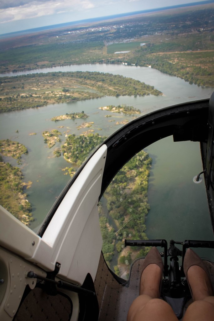 Đó là chuyện ngày xửa ngày xưa. Còn ngày nay, con người đã tiến hoá và hiện đại đến độ hưởng thụ được những gì mà Đấng tối cao của chúng ta hưởng thụ. Vì chúng ta đã có Trực thăng! Phải, trực thăng để ngắm toàn cảnh Thác Victoria, dòng sông mẹ Zambezi, đôi bờ lãnh thổ của Zambia, Zimbabwe và đường chân trời bất tận của châu Phi được đặt tên là “Flights of Angels” (tạm dịch: chuyến bay của những thiên thần) như cách mà Livingstone đã gọi ngày nào.