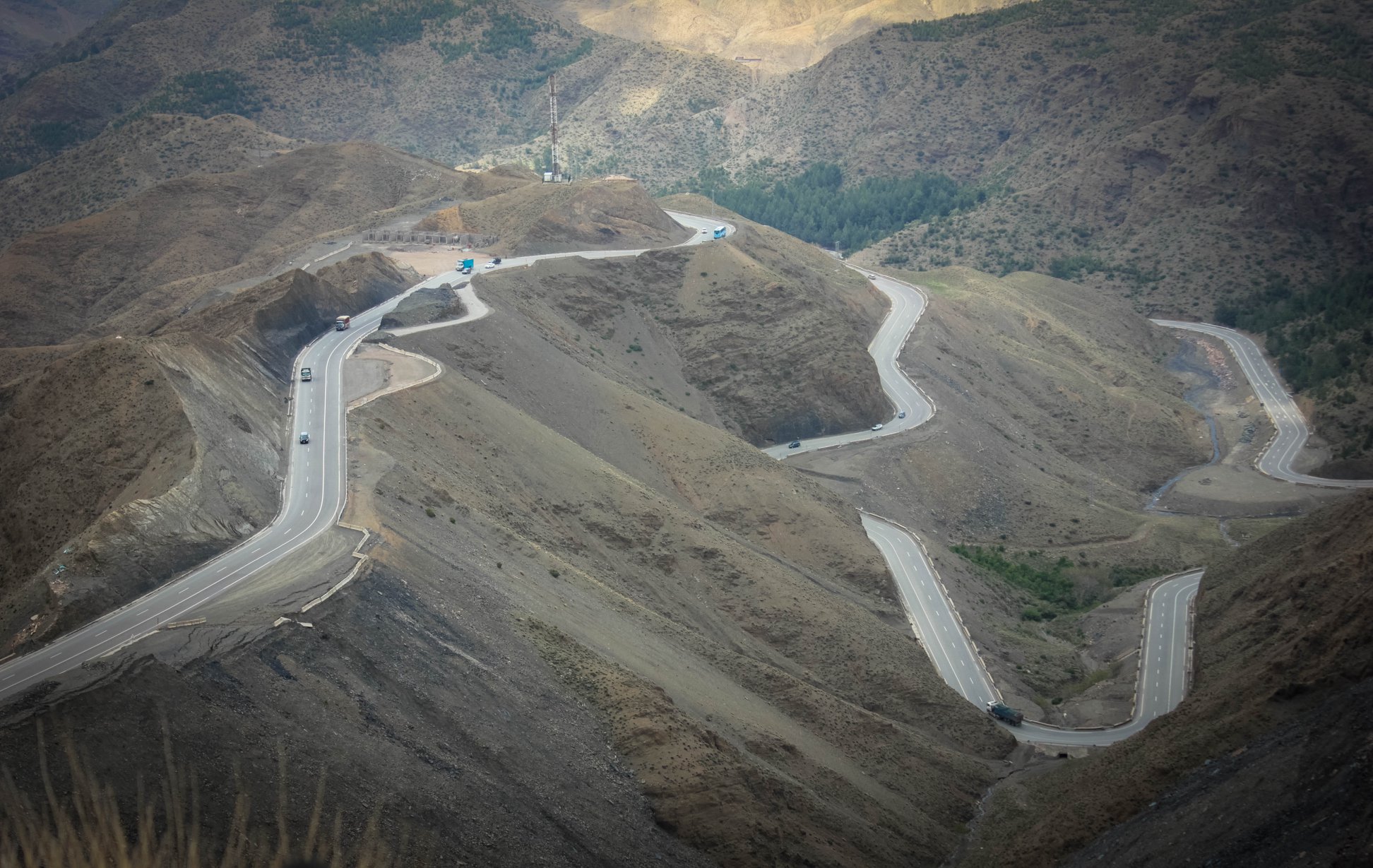 Còn Tizi N’Tichka – cung đường nguy hiểm nhất nhì thế giới, cửa ngõ vào sa mạc Sahara – đang uốn lượn quanh co ngoạn mục. Đứng từ trên điểm cao nhất của Tizi N’Tichka nhìn xuống, tôi có cảm tưởng mình đang xem trọn bộ mô hình xe hơi đang chạy băng băng trên một cung đường đua được dựng hoàn hảo, bày bán trong các cửa hàng đồ chơi đắt tiền. Gió thổi lạnh thấu xương thịt, khung cảnh trập trùng hùng vĩ của dãy Atlas làm bất cứ ai cũng phải khiếp sợ trước sức mạnh khó lường của Mẹ Thiên Nhiên, và nể phục ý chí xẻ núi đào đường của đất nước Bắc Phi lạ kỳ này.