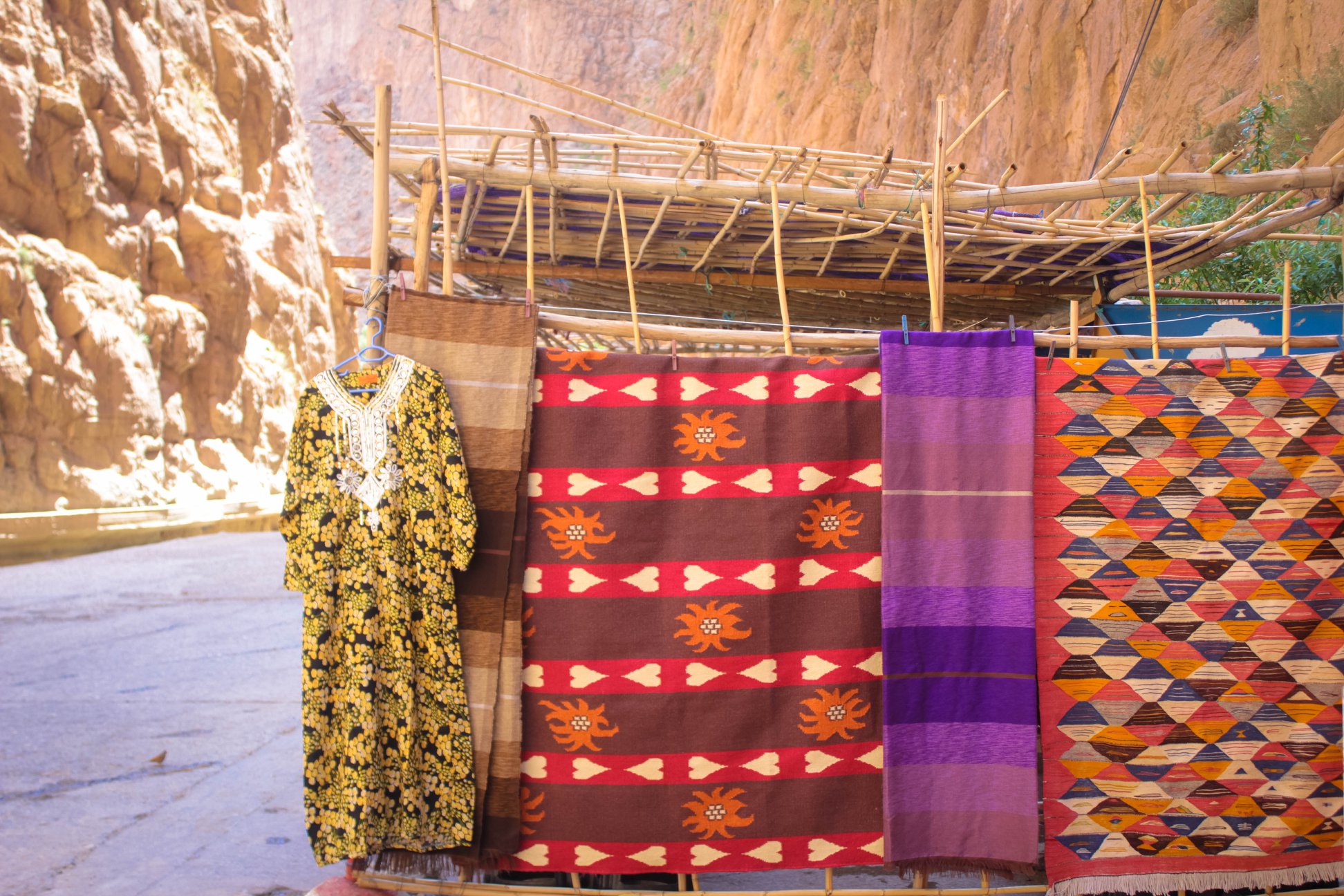 Còn khe Todra Gorge hùng vĩ như đúng film trường của bộ film 300. Những khe núi hẻm đá vôi này là nơi sinh sống của những con người Berber còn sót lại. Hassan nói, họ kỳ thị người Ả Rập và phản kháng yếu ớt bằng cách không trò chuyện, giao thương gì với bất cứ ai nói tiếng Ả Rập. Todra Gorge là nơi leo núi lý tưởng cho những ai ưa thích trò vận động mạo hiểm. Vài ba người khách Tây phương đang tụ tập móc dây, leo núi và í ới gọi nhau kiểm tra độ an toàn. Todra Gorge có những kinh nghiệm mua sắm thật vui, những tấm thảm đan tay đủ màu sắc treo dọc hai bên núi, và dòng sông đá vôi mát lạnh đang chảy róc rách ven đường.