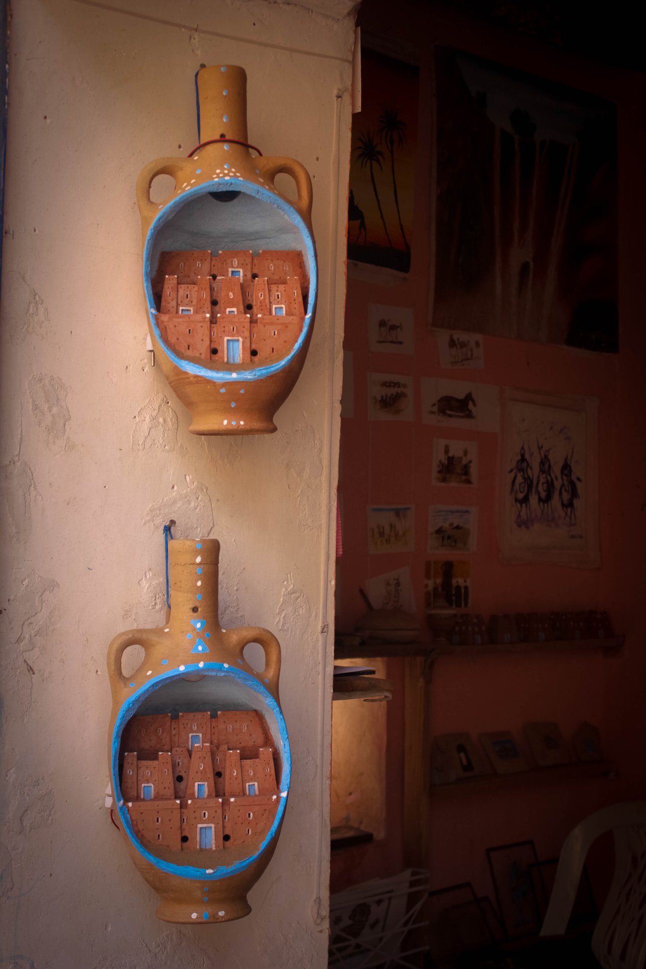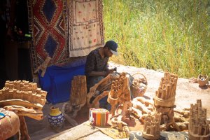 Còn Aït Benhaddou – Yunkai trong series bom tấn Trò chơi vương quyền (Games of Throne) – là một ksar (1) nằm dọc con đường caravan rất cũ giữa Sahara và Marrakech ngày nay. Nói tôi đến Maroc và vẽ một vòng quanh Maroc vì Aït Benhaddou cũng đúng. Tôi luôn tự hào là một “fan” cứng của Trò chơi vương quyền. Nhưng Aït Benhaddou vừa nắng ong ong đầu, lại mưa ào ào rất trái khuấy. Ngôi làng kiên cố Aït Benhaddou giờ chẳng còn ai ở. Người ta chỉ nhân khách du lịch mà tập trung bán buôn chút hàng lưu niệm ban ngày. Người ta khắc một tảng đá vôi thành mô hình Aït Benhaddou thu nhỏ. Người ta vẽ những bức vẽ bằng acrylic rồi đốt cháy bùng bùng để hoàn thiện một bức tranh về Aït Benhaddou. Người ta cũng chiếm lấy những con hẻm nhỏ tối om khai ngấy mùi nước đái mèo bất chấp làm nơi ngả lưng trốn tránh cơn say nắng.