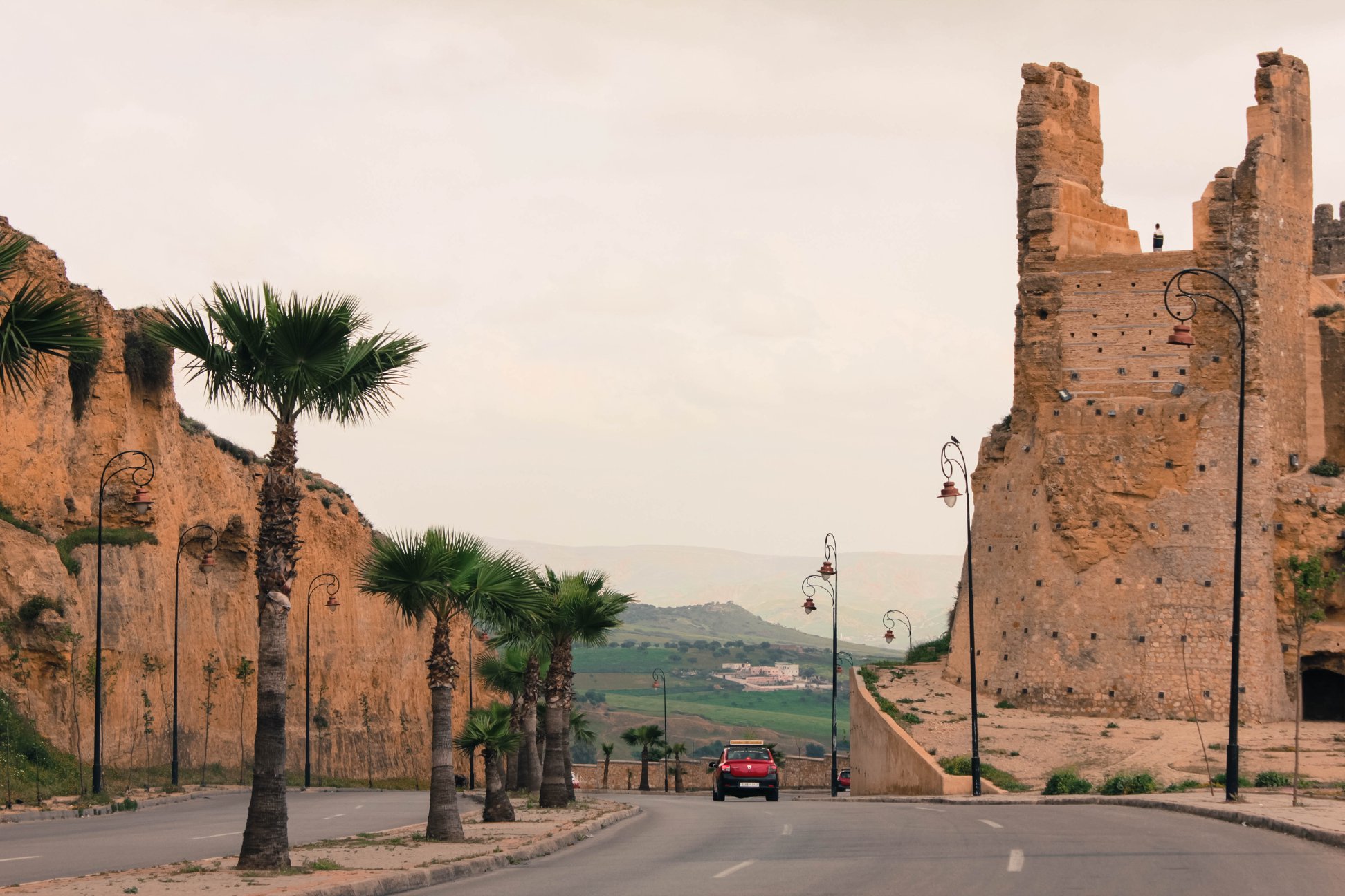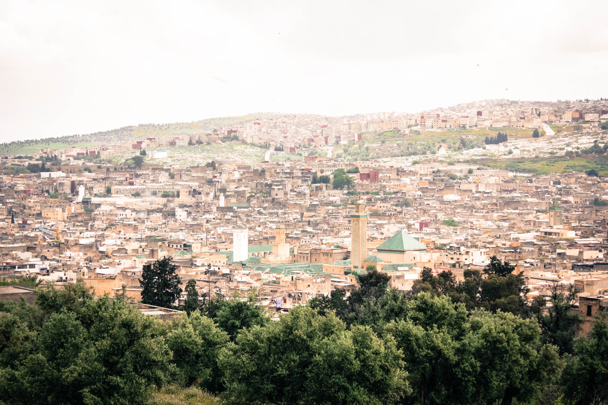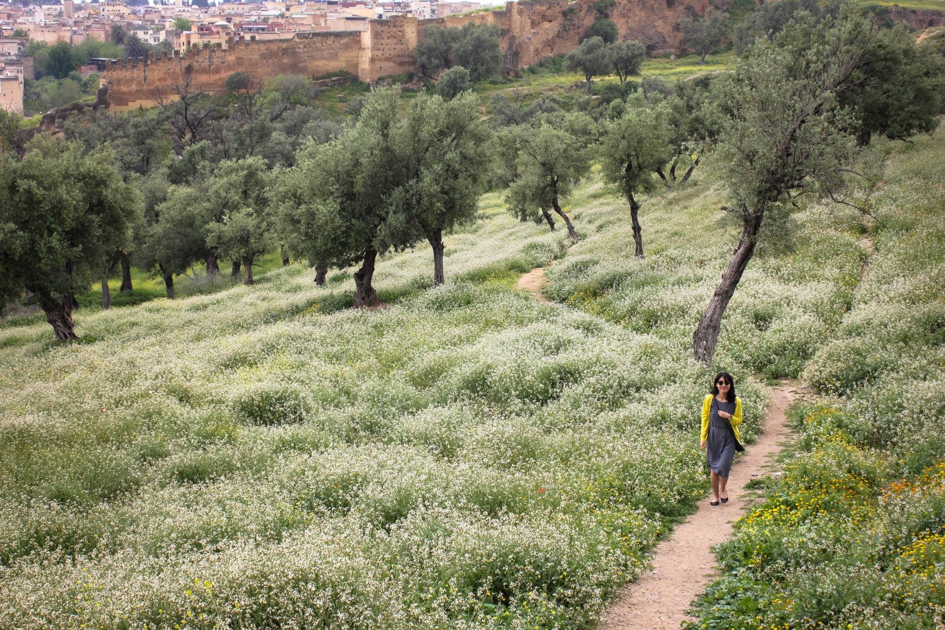 Những cánh đồng hoa dại đung đưa trong gió, con đường mòn uốn lượn bao quanh, bức tường thành sừng sững mặc thời gian và đời sống nhấp nhô của Fez medina đằng xa xa kia đang được bảo vệ bất khả xâm phạm bởi mạn Đông Bắc của dãy Atlas kia kìa.