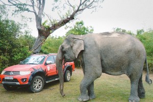 Chiếc xe bán tải bám đầy bụi đường đón chúng tôi ở ngã tư điểm giao dịch xã Yang Tao, có cây đa to mấy vòng tay người ôm, rễ và thân nương tựa vào căn nhà gạch bán nước mía khang trang nhất xóm mà sống, đến điểm hẹn. Đi từ trên đường liên thôn trải nhựa phẳng lì, hai bên là đời sống thôn quê hòa lành, yên ả, bên trái là hồ Lắk mênh mang, bên phải là núi đồi nhấp nhô, chúng tôi đã thấy H’Tau đang lững thững đi ở phía ngược lại đến điểm hẹn. Tiến bảo H’Tau “khôn lắm, thấy chiếc xe đỏ quen thuộc của nhà mình là tự mình đến điểm hen, tự nhớ cung đường mà vào chứ không cần chú dắt luôn. Bình thường H’Tau ham ăn, ham chơi, vừa đi vừa nhởn nhơ bứt lá, bẻ cây mà ăn thôi. Còn bây giờ là sẽ đến đúng hẹn, cả nhà cứ yên tâm”.